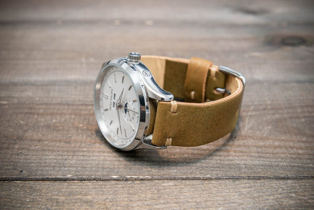Each strap is handcrafted and custom made to order. Please, measure carefully watch lugs and your wrist before placing your order. Contact us prior to order placing if needed. Once product is cut, we do not accept changes anymore. We do not accept returns and exchanges for custom made products. Thank you for understanding. Please, note, each product is unique and might slightly differ from the listed image (leather color, leather structure, etc). For product customization, check drop-down options below or contact us via email