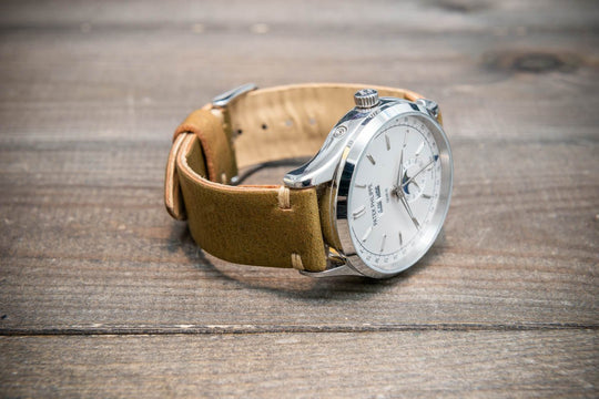 Handmade watch strap made with beautiful, light, silky and very durable Nordic Deer leather from Ahlskog tannery, Finland. Spring green color.