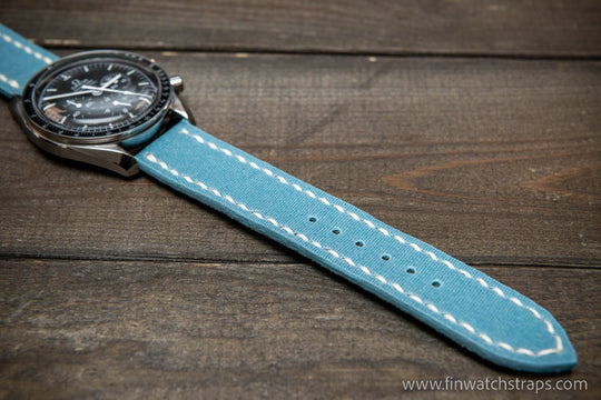 Marine sailcloth canvas watch straps, handmade with care using premium quality fabrics (produced in the USA), saddle stitched with waxed lin.