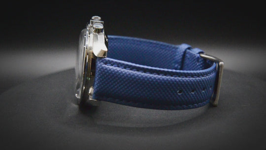 Waterproof sailcloth watch strap . The strap is slightly padded. The strap has canvas lining, so it is completely water-resistant and is suitable for swimming.