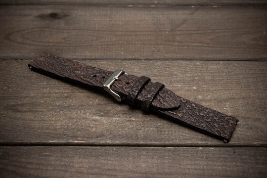 Each strap is handcrafted in Finland in small batches. Working with shark leather requires skill and precision, as the hide is dense and durable. This makes it a reliable choice for a watch strap that will keep its form and character for years.