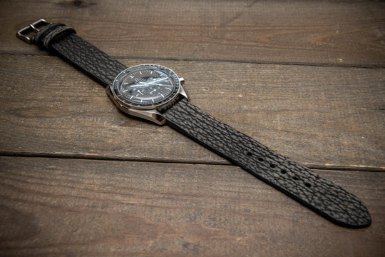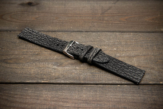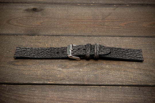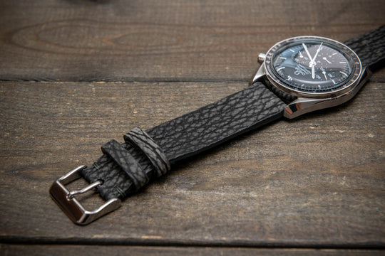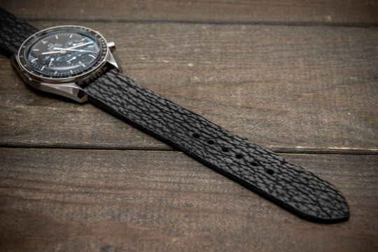 Each piece is handcrafted in Finland in small batches. Shark leather is dense and strong, making it an excellent choice for a strap that will serve for years while maintaining its refined appearance.
