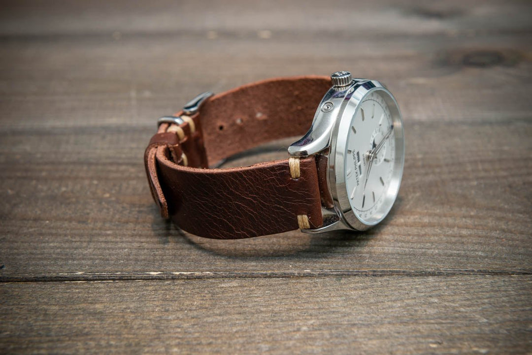 Badalassi Tobacco Wax leather watch strap. Hand-made to order in Finland.