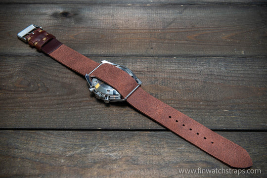 Leather watch band, one piece vintage leather watch strap. This strap model fits perfectly old vintage style watches and watches with non-removable pins.
