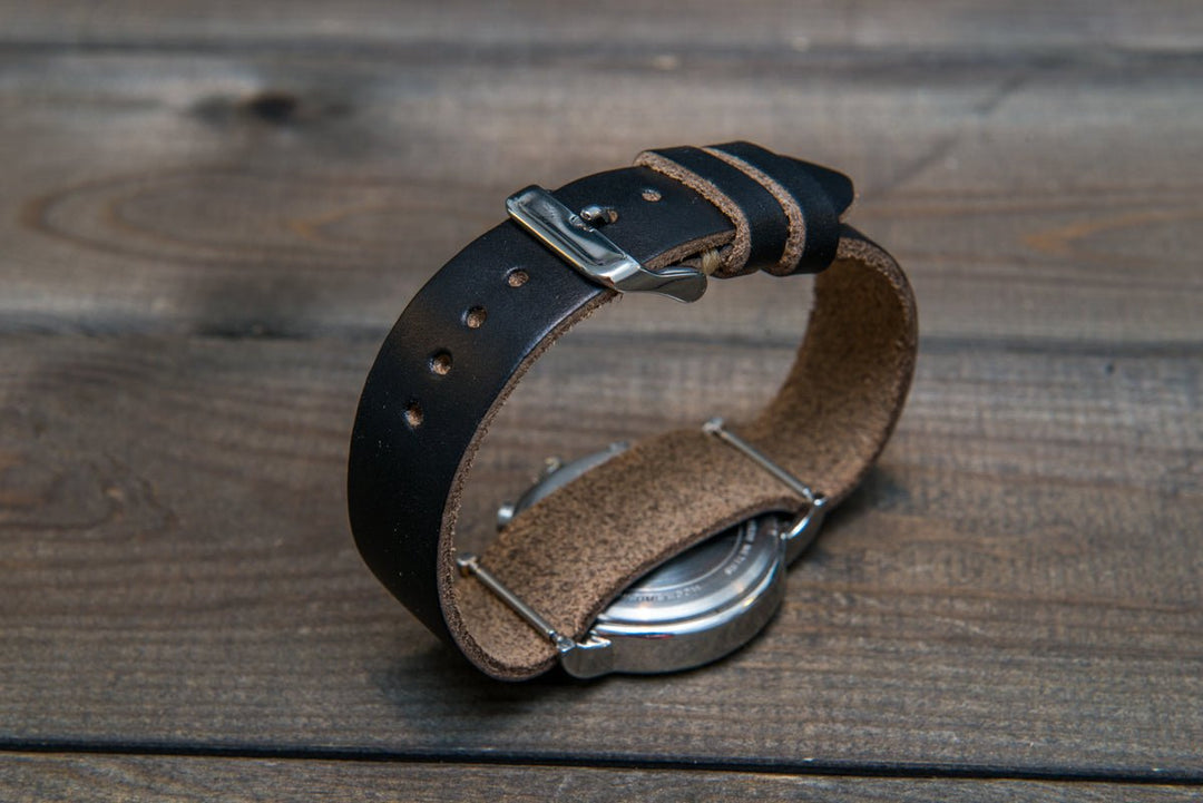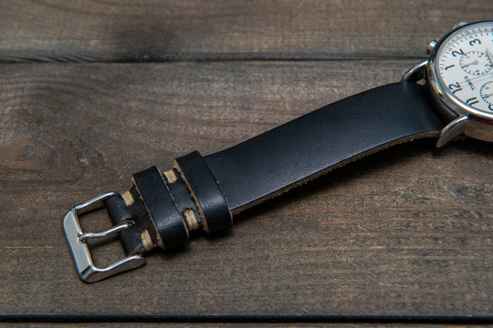 Horween leather watch band, one piece vintage leather watch strap. This strap model fits perfectly old vintage style watches and watches with non-removable pins.