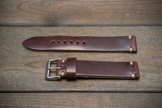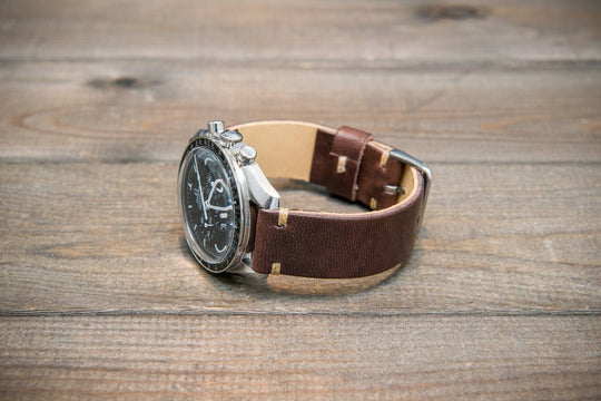 Customizable watch strap made of the finest Vachetta leather from Italy, beautiful dark cognac color. The watch straps have a unique rustic look and deep color. The leather gets beautiful patina with the time.