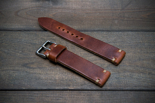 Customizable watch strap made of the finest Vachetta leather from Italy, beautiful dark cognac color. The watch straps have a unique rustic look and deep color. The leather gets beautiful patina with the time.
