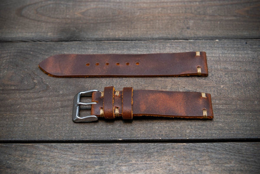 Leather watch band. Vandyke Brown-Mustard. Handmade in Finland 10-26 mm.
