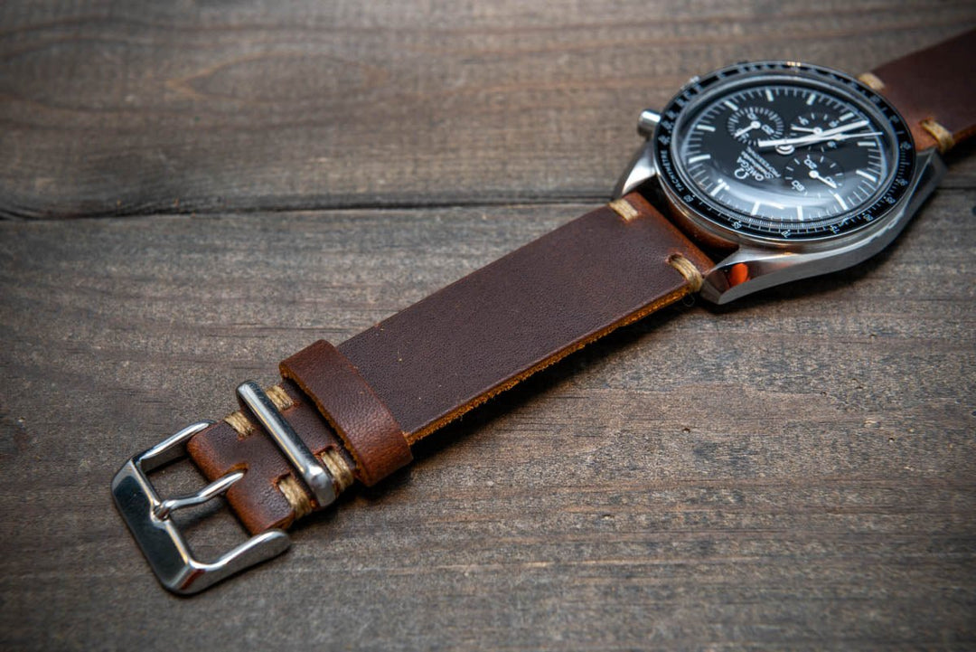 Leather watch band. Vandyke Brown-Mustard. Handmade in Finland 15-26 mm.