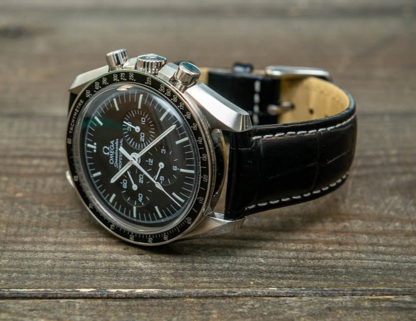 Leather watch strap made of calf leather with croc grain pattern 18, 19, 20, 21, 22 mm. Shipping worldwide.