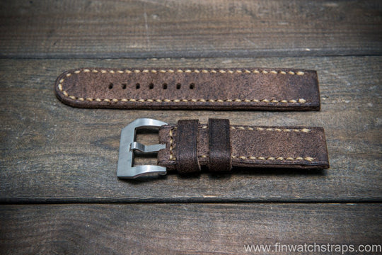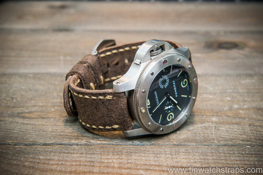 The watch strap is made of the finest suede leather from the UK. The watch strap has a unique rustic look and deep color. The leather gets beautiful patina with the time.