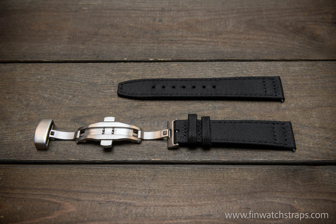 Canvas waterproof watch strap, 17mm, 18mm, 19 mm, 20 mm, 21 mm, 22 mm, 23mm, 24mm with a deployment clasp.