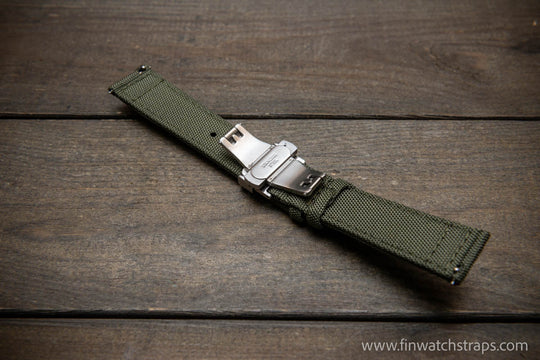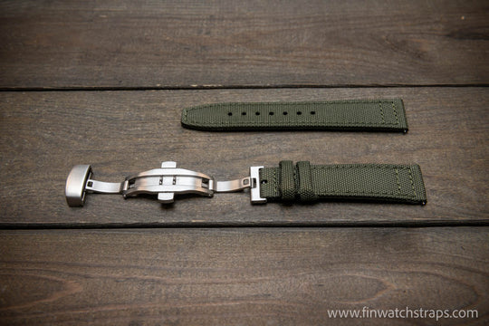 Canvas waterproof watch strap,17mm, 18mm, 19 mm, 20 mm, 21 mm, 22 mm. 23mm, 24mm. with a deployment clasp.