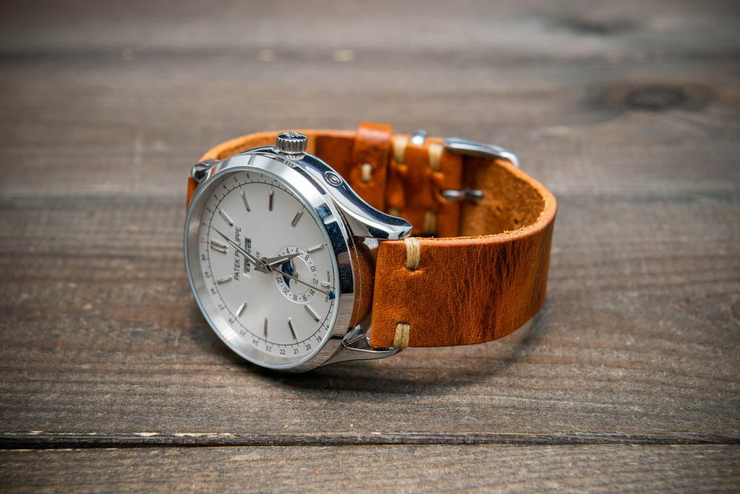 Badalassi Tawny Wax leather watch strap. Hand-made to order in Finland.