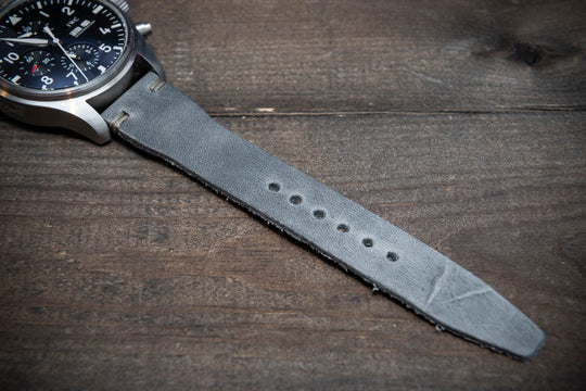 Pilot model watch band. Aviator military style Badalassi Carlo (Italy) Leather Watch Band. Grey Fodder color.