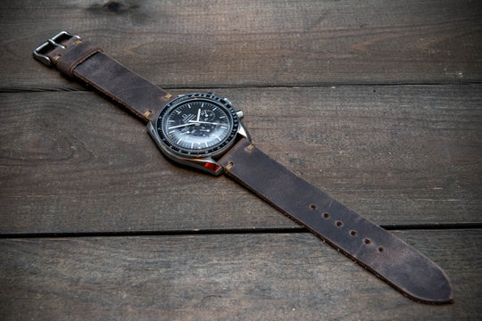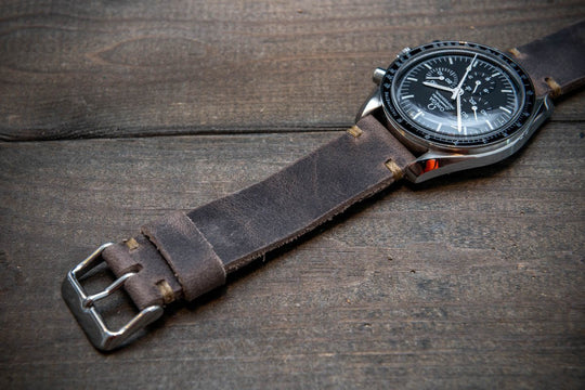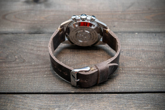 The watch strap is made of the finest Badalassi Carlo leather from Italy. The watch strap has a unique rustic look and deep color. The leather gets beautiful patina with the time. Color: vintage mocha brown, pull-up.