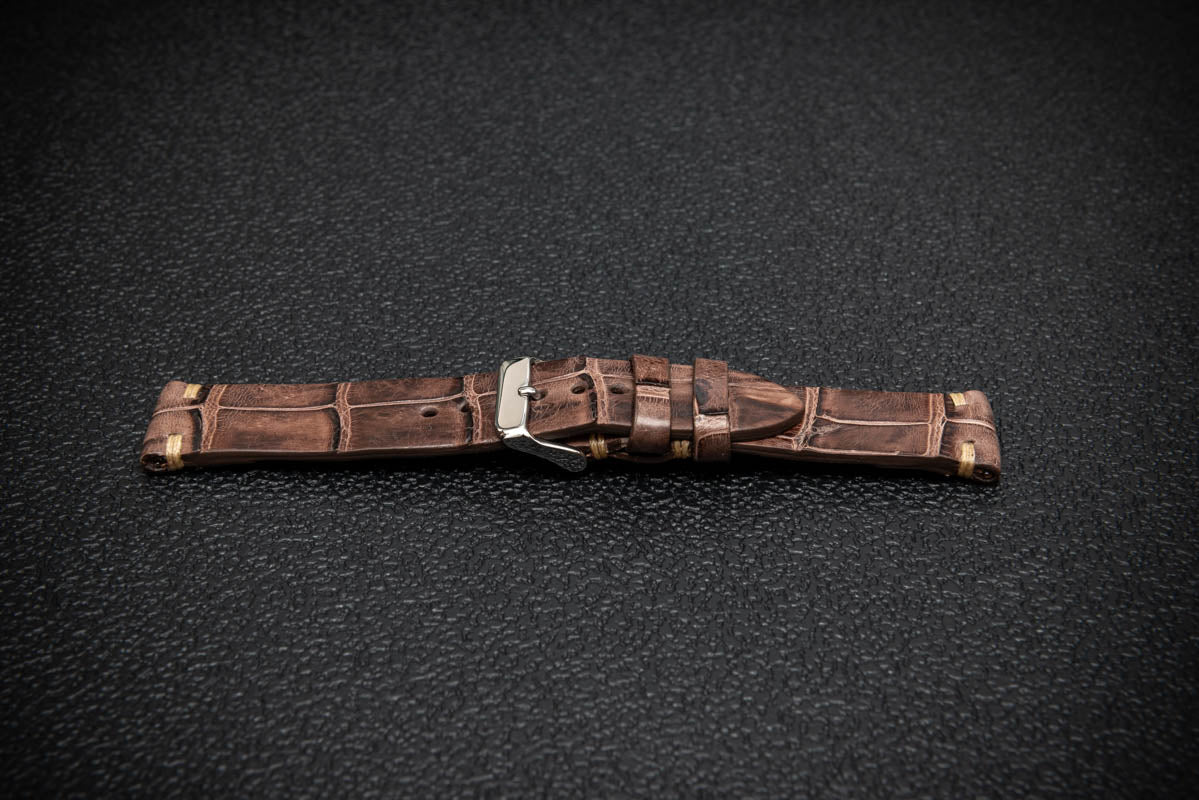 Experience the craftsmanship and timeless appeal of a handmade alligator leather strap – a statement of refinement for your watch collection.